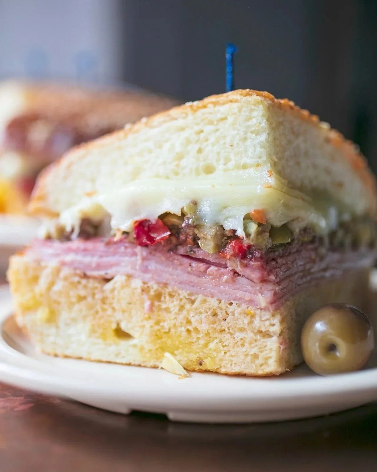 Here, the muffuletta is served hot, toasted until the cheese melts and the bread transforms into something sturdier and more deliberate. The warmth changes the structure. The flavors open up. The sandwich becomes something meant to be shared, not rushed.